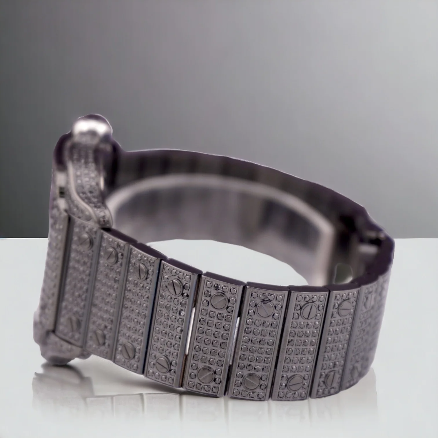 Santos De Cartier Black PVD Iced Out Diamonds Roman Dial - Custom Pave