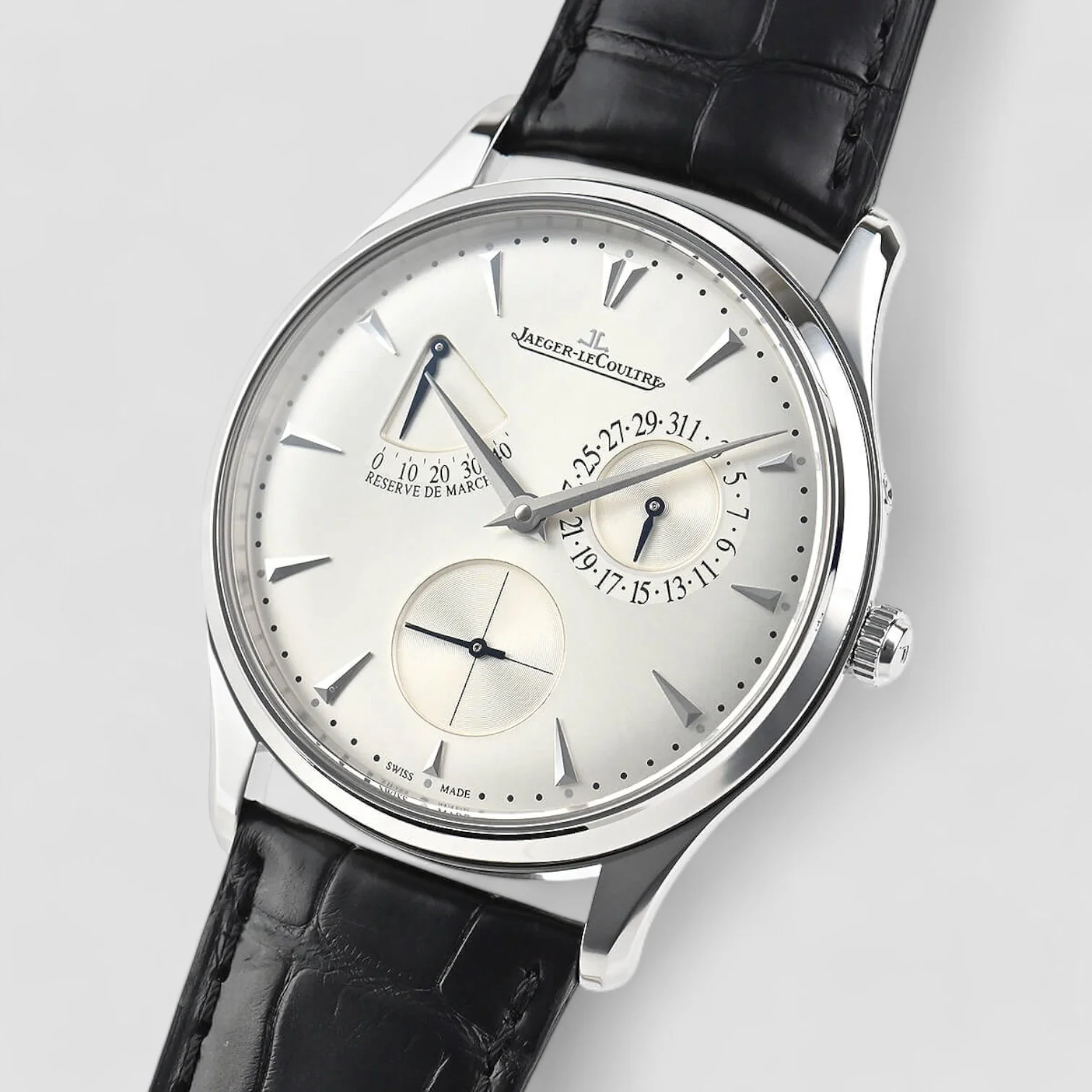The Jaeger-LeCoultre Master Control Date (reference Q1378420) embodies timeless elegance and Swiss precision. Featuring a 39 mm stainless steel case, it features a sleek silver dial with applied indexes and a subtly integrated date hand at 3 oâclock. Powered by the Jaeger-LeCoultre Calibre 899 automatic movement, it offers a 38-hour power reserve. Perfect for everyday use, it is water-resistant to 50 metres. This watch is a classic of sophistication.
