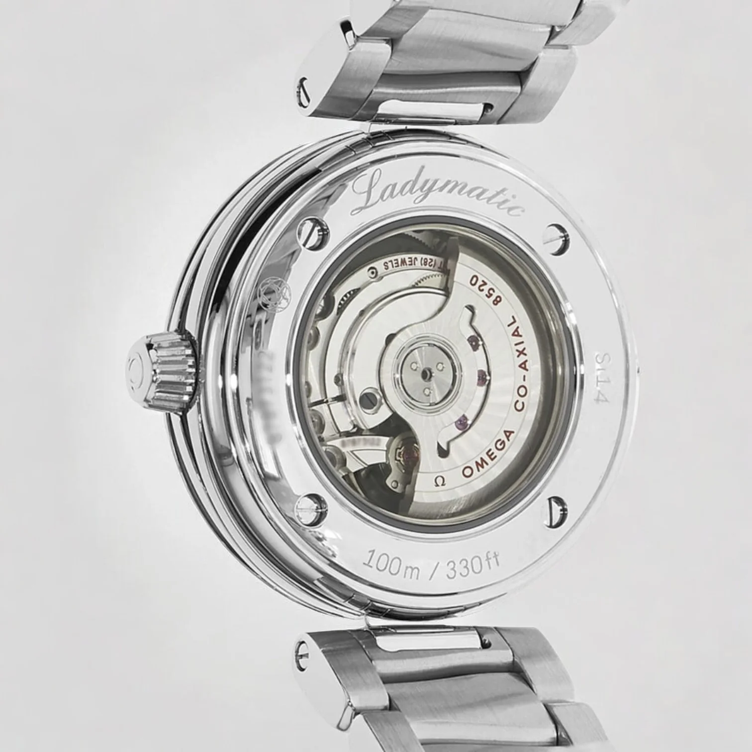 The Omega De Ville Ladymatic Co-Axial Chronometer 34 mm (reference 425.30.34.20.55.002) is a refined timepiece that seamlessly blends elegance with precision. Its 34 mm stainless steel case and bracelet provide a timeless appeal, while the white pearled mother-of-pearl dial adds a touch of femininity. The dial is adorned with 11 diamond-set indexes and polished white gold alpha-shaped hands, enhancing its luxurious design. A date window at 3 o'clock offers practical functionality. Powered by the OMEGA Co-Axial calibre 8520, this chronometer-certified watch ensures exceptional accuracy and reliability. With a water resistance of 100 meters, it is both stylish and versatile for daily wear.