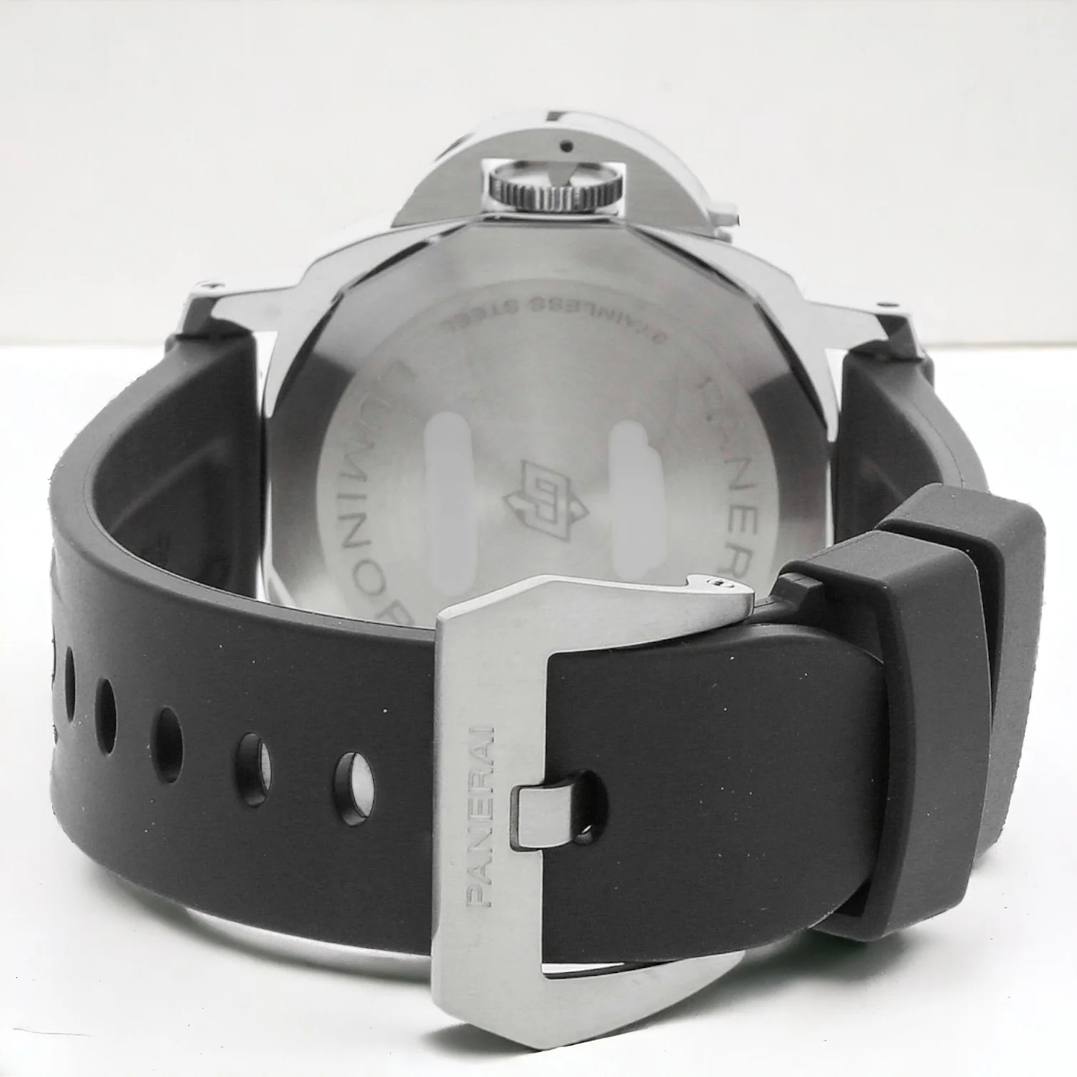 The Panerai Luminor Base Logo PAM01086 is an elegant and robust watch, emblematic of the Panerai brand. Its 44 mm stainless steel case houses a manual winding movement Caliber P.6000, offering a power reserve of 72 hours. Its black dial with large indexes and Arabic numerals guarantees optimal readability. The water resistance to 300 meters makes it a watch suitable for diving. This piece combines sporty aesthetics and functionality, with a black rubber strap for a chic and timeless style.