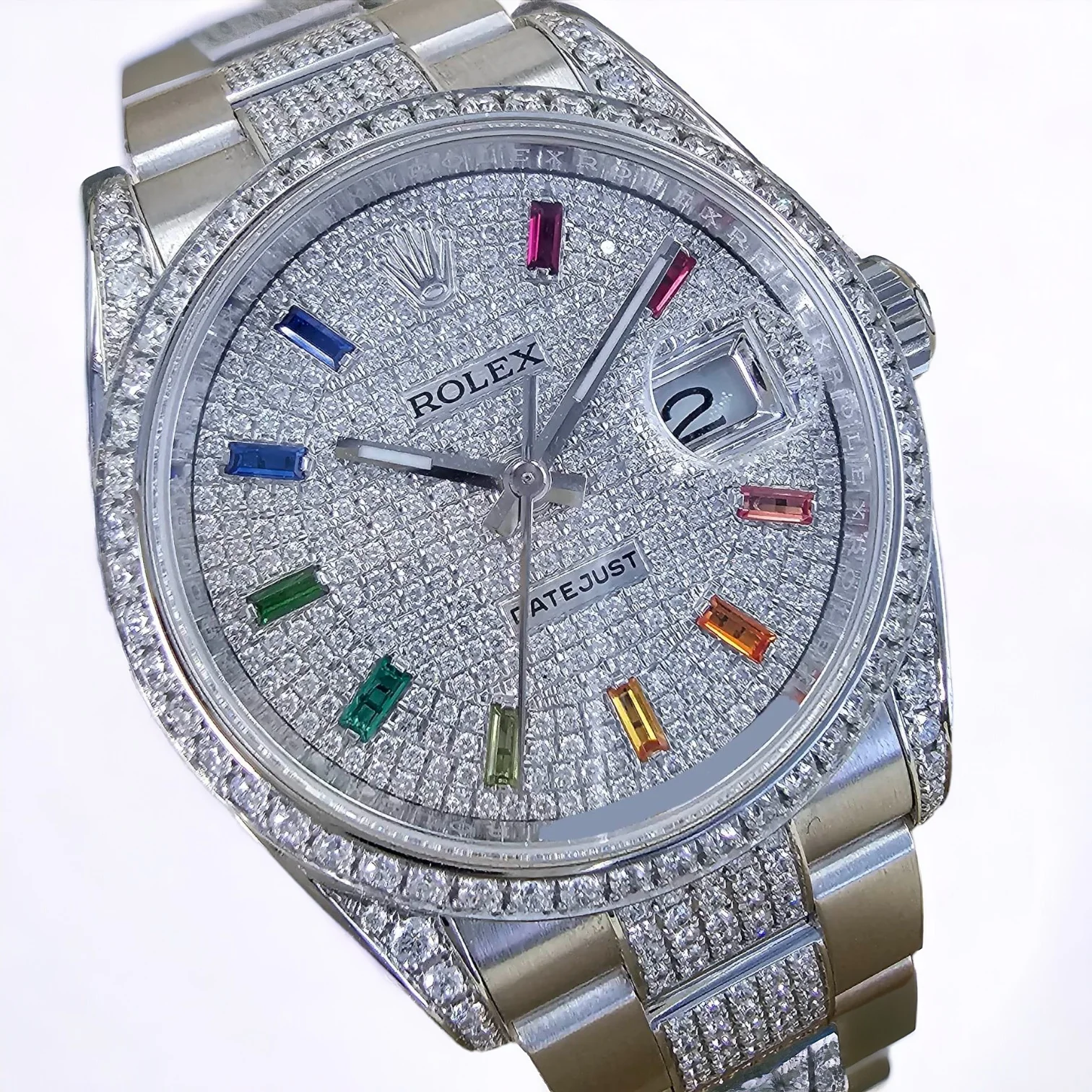 Datejust 36 Custom Iced Out Dial & Bezel | Rainbow Index - Bracelet Pavé
