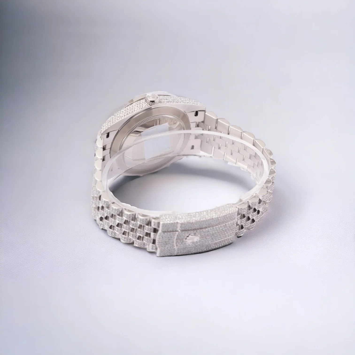 The Rolex Datejust 41 in steel features exceptional customization, with a sparkling diamond all-over setting and a dramatic rainbow bezel.Presented on a Jubilee bracelet, this watch combines the classic Datejust design with a bold, modern sparkle.The dial features a unique, vibrant style, accentuating its luxurious, contemporary allure.Ideal for those seeking exclusivity and refinement. Diamond Clarity: VS-SI Diamond Cut: Brilliant Diamond Color: G-H Please note that we are not affiliated with any manufacturer.Therefore, all watches sold by GWC supersede any existing warranty.However, GWC provides each purchaser with an equivalent 2-year warranty that mirrors that of the manufacturer.